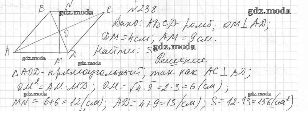 ОТВЕТ на задание № 238 Дидактические материалы по Геометрии 8 класс Мерзляк Алгоритм успеха