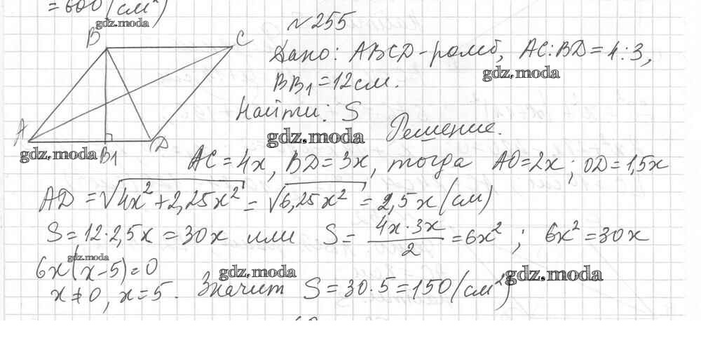 ОТВЕТ на задание № 255 Дидактические материалы по Геометрии 8 класс Мерзляк Алгоритм успеха