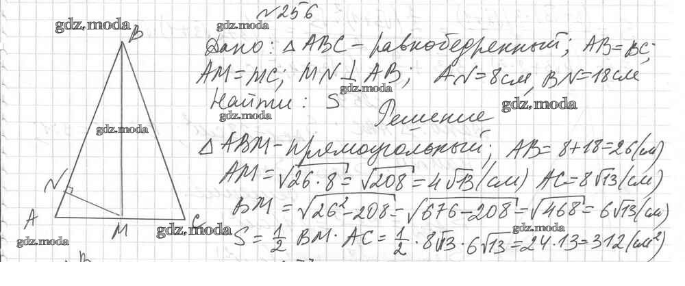 ОТВЕТ на задание № 256 Дидактические материалы по Геометрии 8 класс Мерзляк Алгоритм успеха
