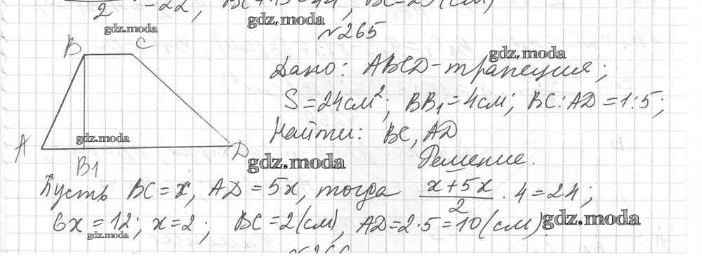 ОТВЕТ на задание № 265 Дидактические материалы по Геометрии 8 класс Мерзляк Алгоритм успеха