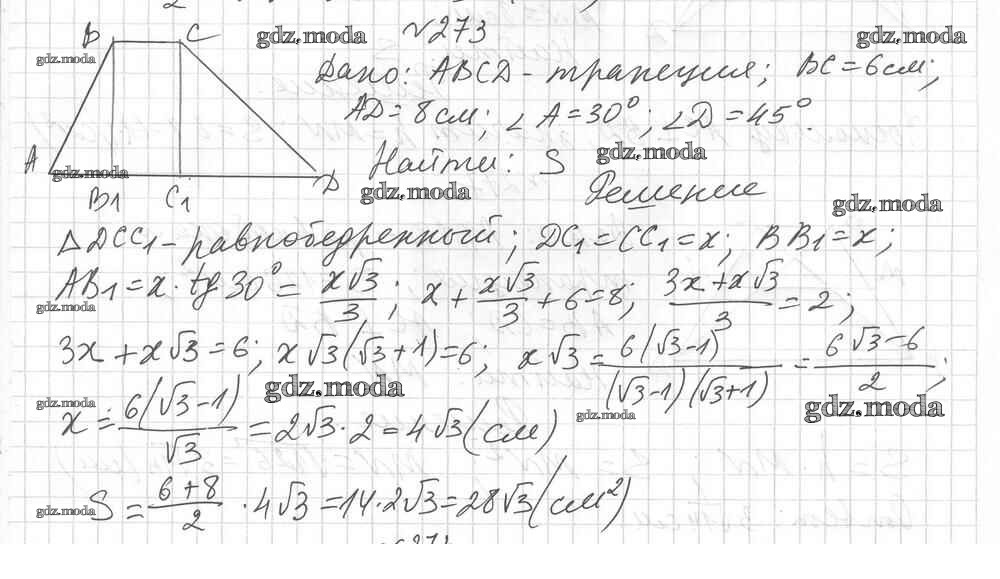 ОТВЕТ на задание № 273 Дидактические материалы по Геометрии 8 класс Мерзляк Алгоритм успеха