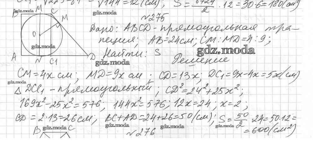 ОТВЕТ на задание № 275 Дидактические материалы по Геометрии 8 класс Мерзляк Алгоритм успеха
