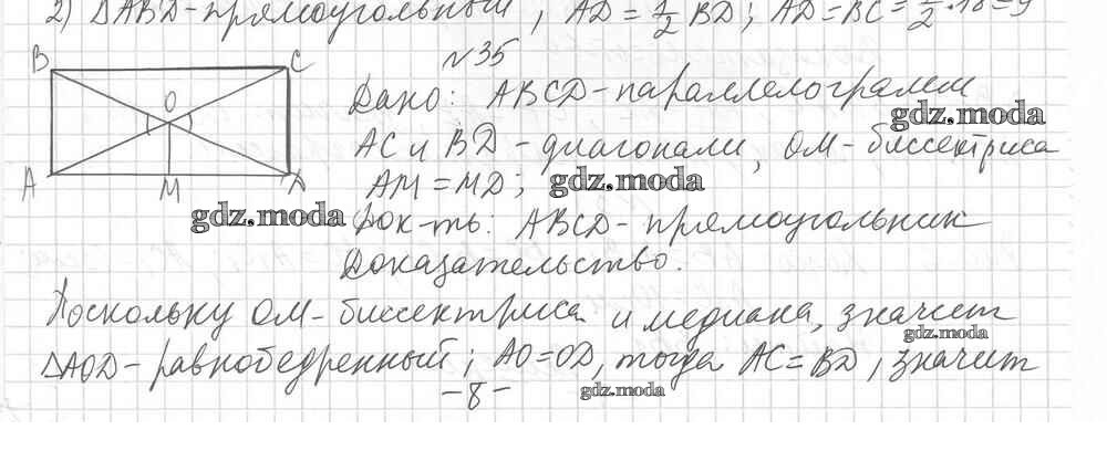 ОТВЕТ на задание № 35 Дидактические материалы по Геометрии 8 класс Мерзляк Алгоритм успеха