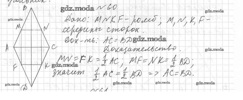 ОТВЕТ на задание № 60 Дидактические материалы по Геометрии 8 класс Мерзляк Алгоритм успеха