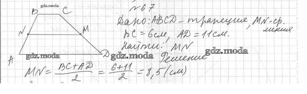 ОТВЕТ на задание № 67 Дидактические материалы по Геометрии 8 класс Мерзляк Алгоритм успеха
