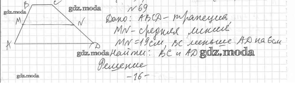 ОТВЕТ на задание № 69 Дидактические материалы по Геометрии 8 класс Мерзляк Алгоритм успеха
