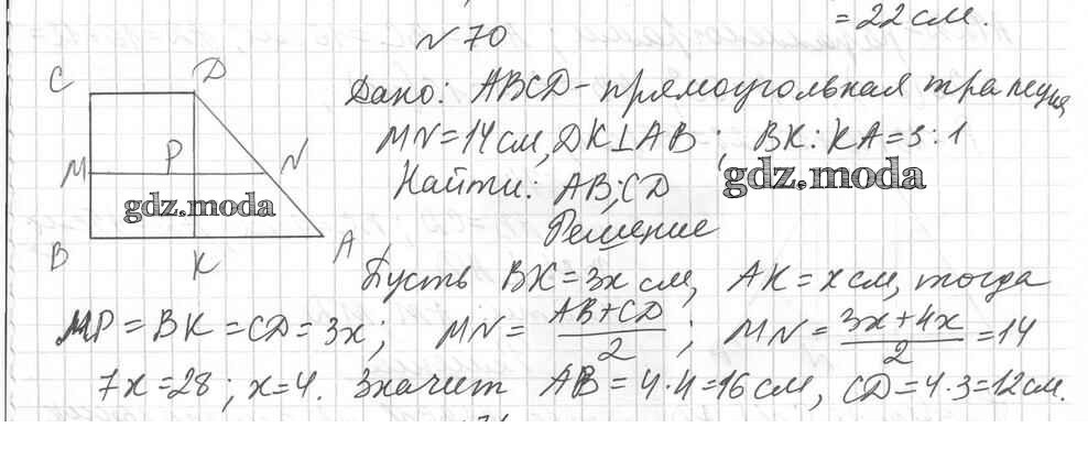 ОТВЕТ на задание № 70 Дидактические материалы по Геометрии 8 класс Мерзляк Алгоритм успеха