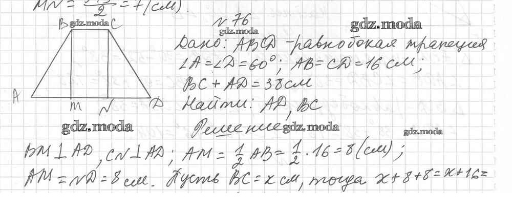 ОТВЕТ на задание № 76 Дидактические материалы по Геометрии 8 класс Мерзляк Алгоритм успеха