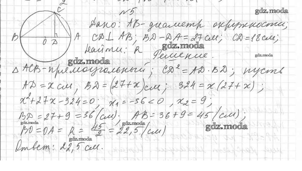 ОТВЕТ на задание № КР-7 Дидактические материалы по Геометрии 8 класс Мерзляк Алгоритм успеха