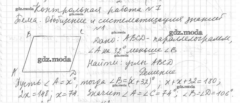 ОТВЕТ на задание № КР-7 Дидактические материалы по Геометрии 8 класс Мерзляк Алгоритм успеха
