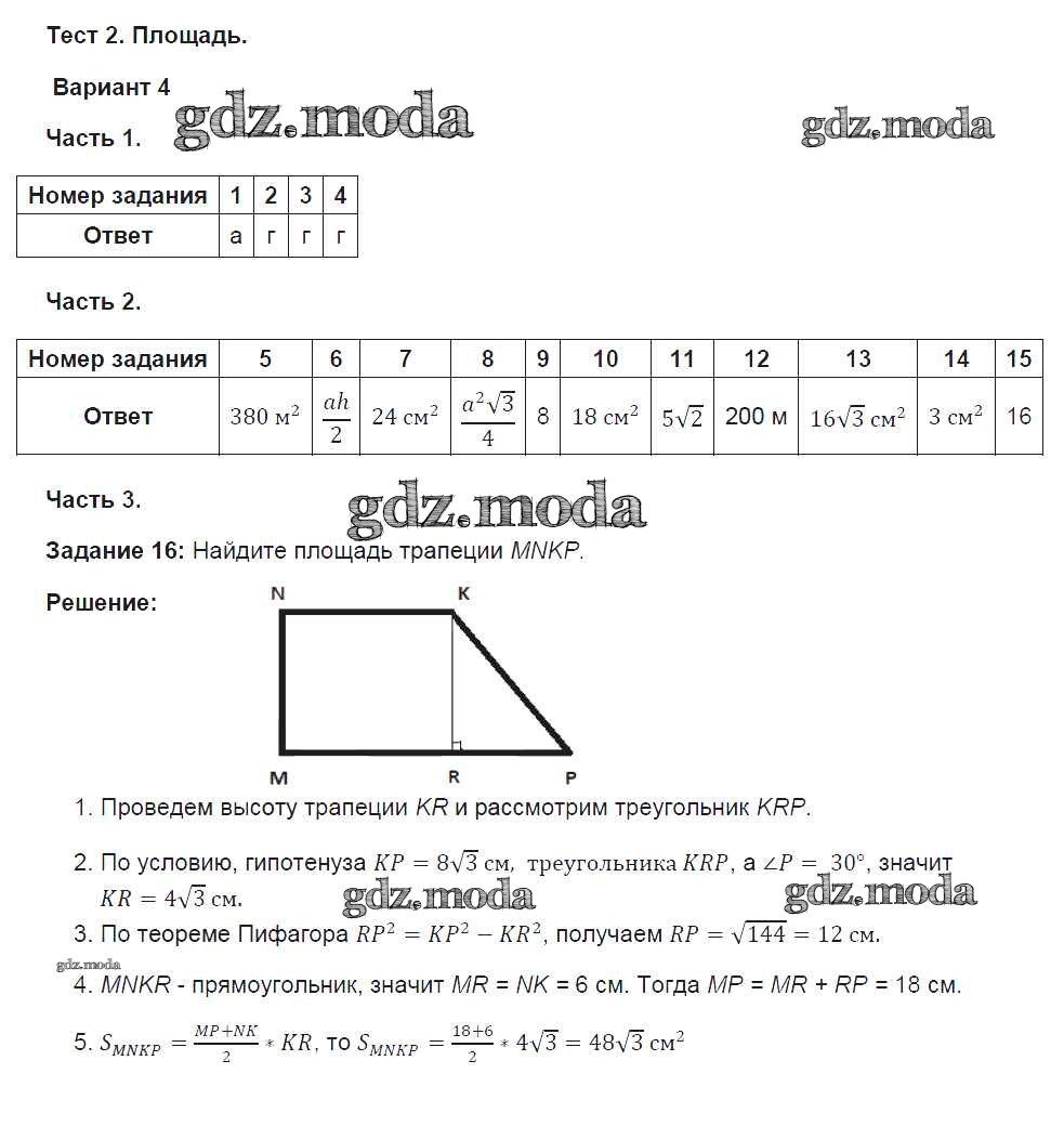 ГДЗ решение к заданию № вариант №4 Геометрия 8 класс тесты Фарков А.В. (к уч. Атанасяна) Экзамен 2014 ФГОС бесплатно на гдз.мода!