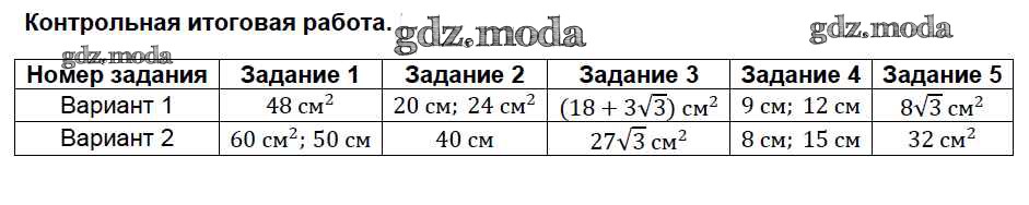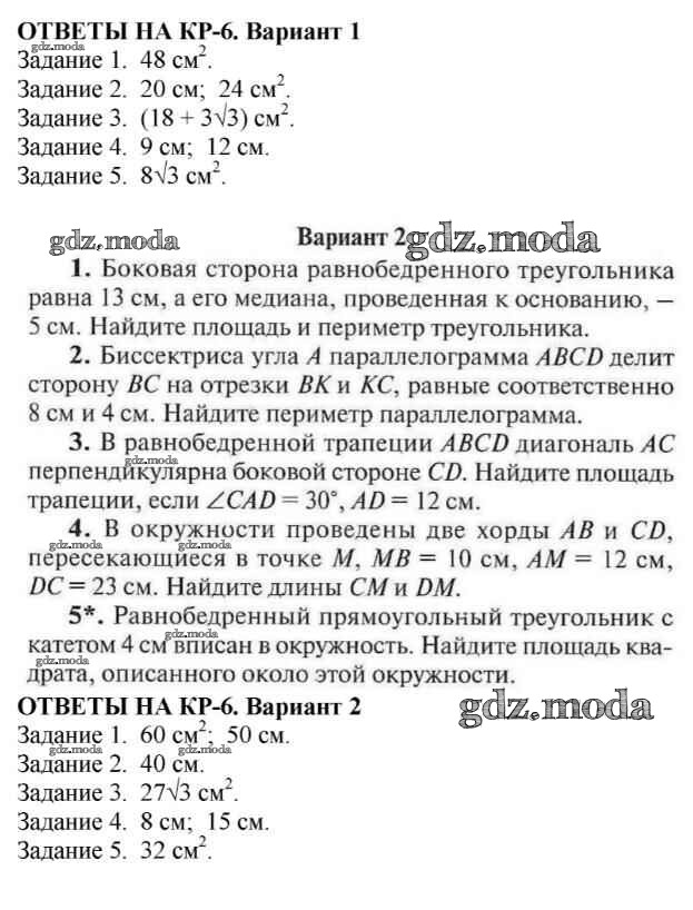 ОТВЕТ на задание № КР-6 Контрольно-измерительные материалы (КИМ) по Геометрии 8 класс Гаврилова