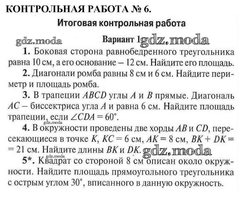 ГДЗ решение к заданию № КР-6 Геометрия 8 класс контрольно-измерительные материалы Гаврилова Н.Ф. ВАКО 2018 ФГОС бесплатно на гдз.мода!