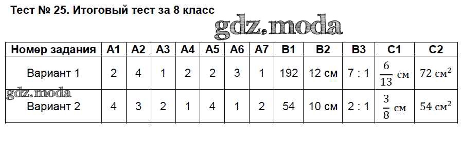ГДЗ решение к заданию № Тест №25. Итоговый тест за 8 класс Геометрия 8 класс контрольно-измерительные материалы Гаврилова Н.Ф. ВАКО 2018 ФГОС бесплатно на гдз.мода!