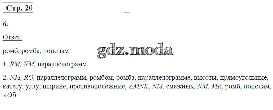 ОТВЕТ на задание № 20 Рабочая тетрадь по Геометрии 8 класс Глазков УМК