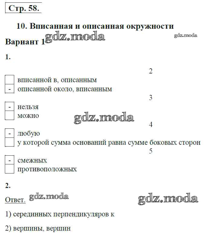 ГДЗ решение к заданию № 58 Геометрия 8 класс Универсальные учебные действия (рабочая тетрадь) Глазков Ю.А. (к уч. Атанасяна) Экзамен 2017 ФГОС бесплатно на гдз.мода!