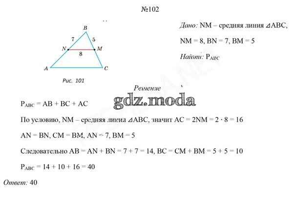 ОТВЕТ на задание № 102 Учебник по Геометрии 8 класс Казаков