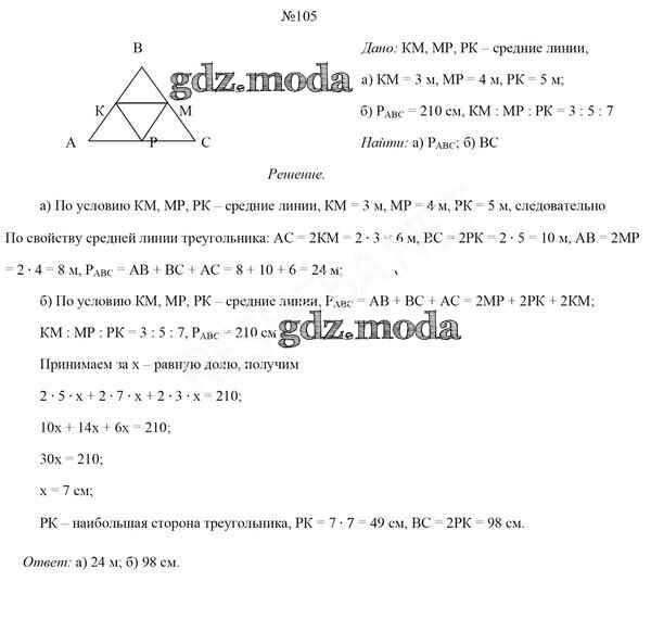 ОТВЕТ на задание № 105 Учебник по Геометрии 8 класс Казаков
