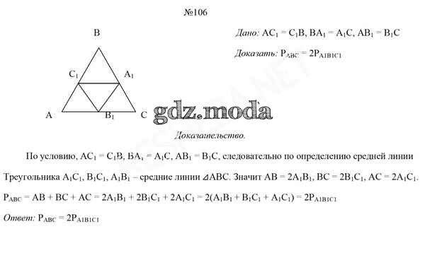 ОТВЕТ на задание № 106 Учебник по Геометрии 8 класс Казаков