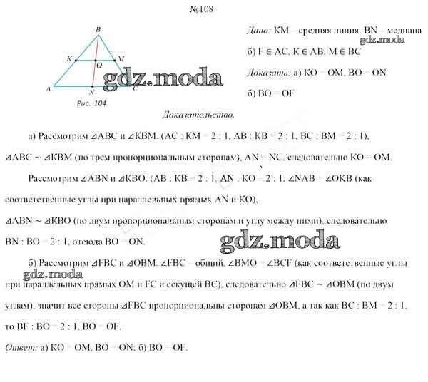 ОТВЕТ на задание № 108 Учебник по Геометрии 8 класс Казаков