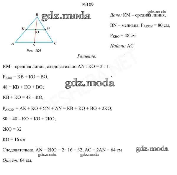 ОТВЕТ на задание № 109 Учебник по Геометрии 8 класс Казаков