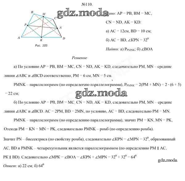 ОТВЕТ на задание № 110 Учебник по Геометрии 8 класс Казаков