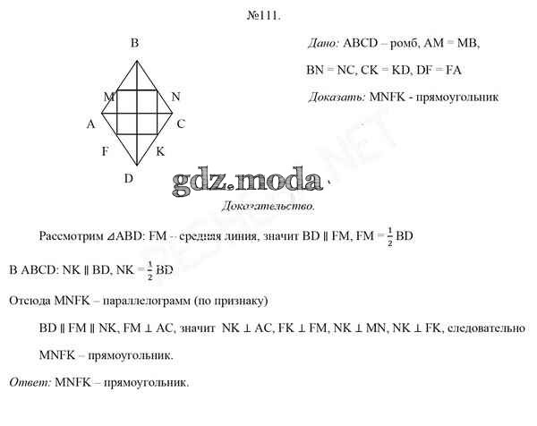 ОТВЕТ на задание № 111 Учебник по Геометрии 8 класс Казаков