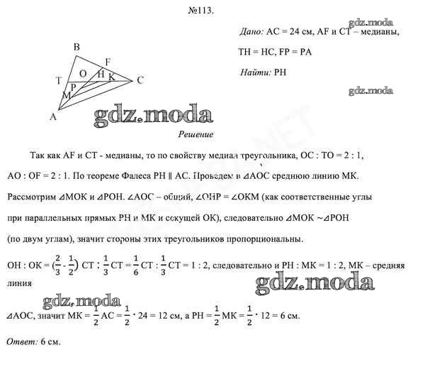 ОТВЕТ на задание № 113 Учебник по Геометрии 8 класс Казаков