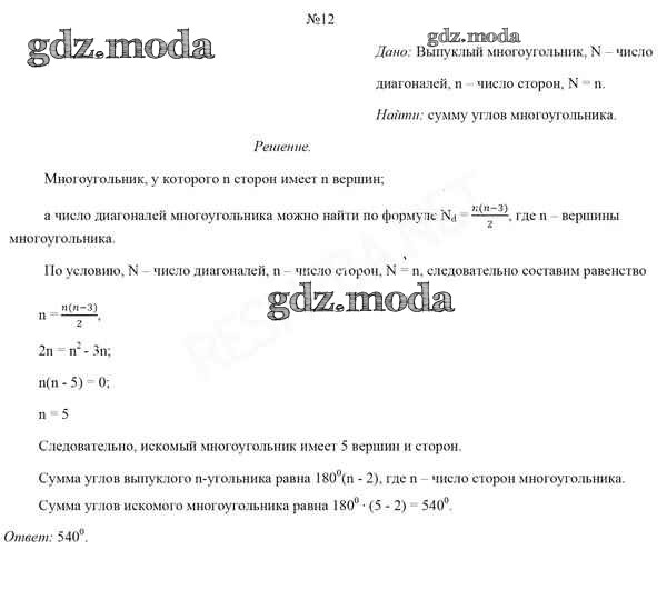 ОТВЕТ на задание № 12 Учебник по Геометрии 8 класс Казаков