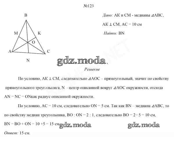 ОТВЕТ на задание № 123 Учебник по Геометрии 8 класс Казаков