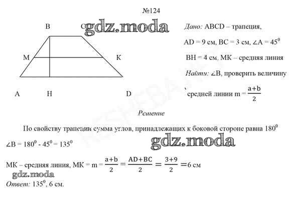 ОТВЕТ на задание № 124 Учебник по Геометрии 8 класс Казаков
