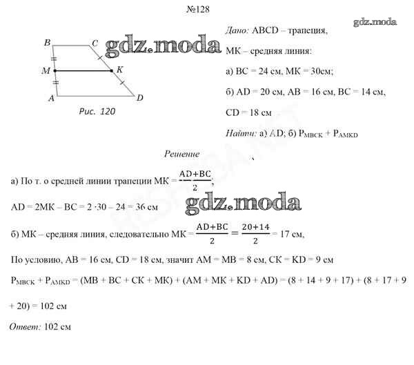 ОТВЕТ на задание № 128 Учебник по Геометрии 8 класс Казаков