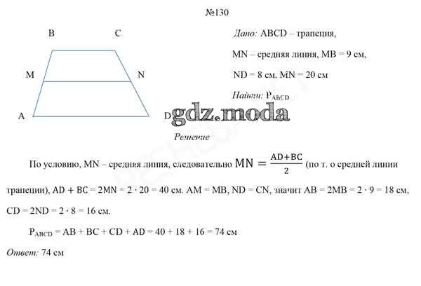 ОТВЕТ на задание № 130 Учебник по Геометрии 8 класс Казаков