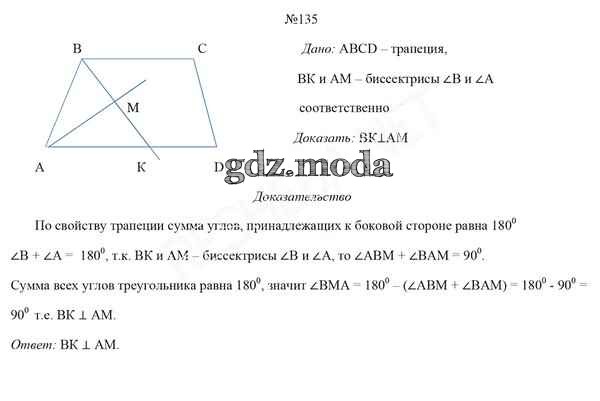 ОТВЕТ на задание № 135 Учебник по Геометрии 8 класс Казаков