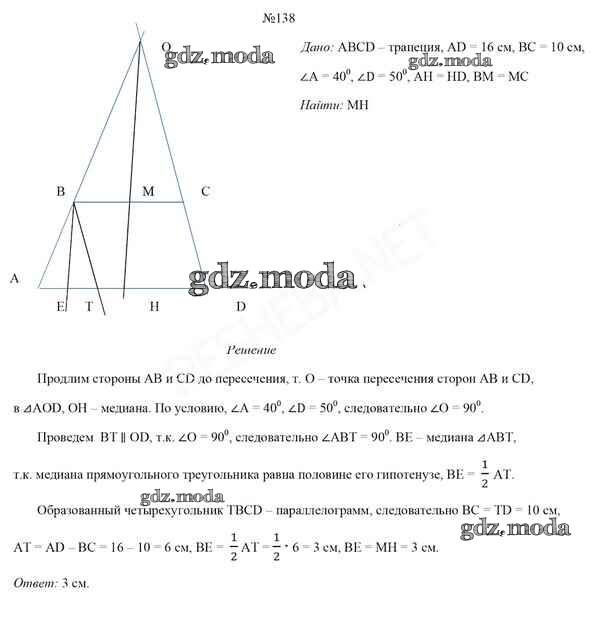 ОТВЕТ на задание № 138 Учебник по Геометрии 8 класс Казаков
