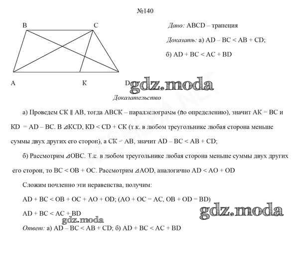 ОТВЕТ на задание № 140 Учебник по Геометрии 8 класс Казаков
