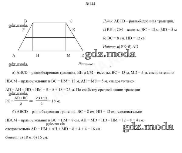 ОТВЕТ на задание № 144 Учебник по Геометрии 8 класс Казаков