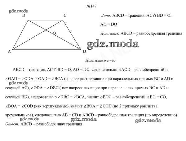 ОТВЕТ на задание № 147 Учебник по Геометрии 8 класс Казаков