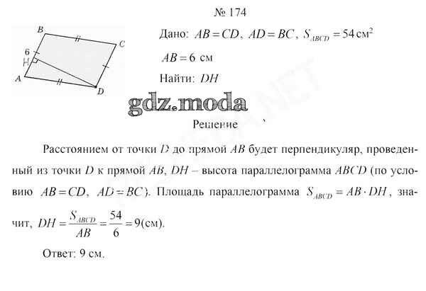 ОТВЕТ на задание № 174 Учебник по Геометрии 8 класс Казаков