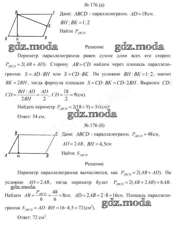 ГДЗ решение к заданию № 176 Геометрия 8 класс Казаков В.В. Народная асвета 2018 бесплатно на гдз.мода!
