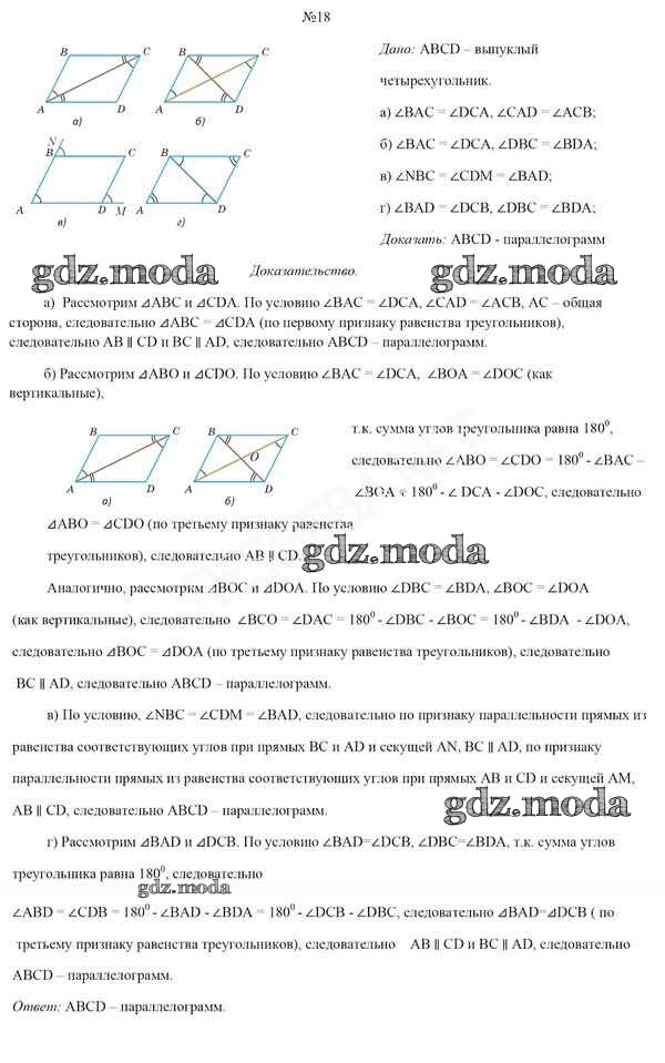 ОТВЕТ на задание № 18 Учебник по Геометрии 8 класс Казаков