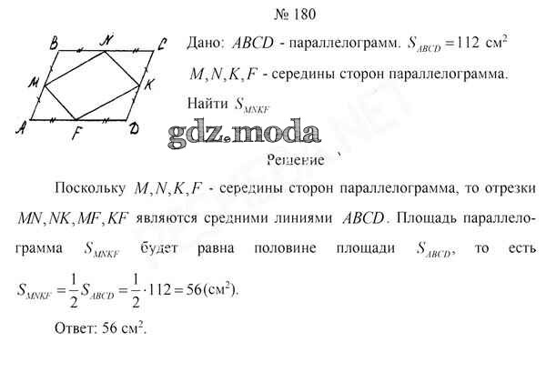 ОТВЕТ на задание № 180 Учебник по Геометрии 8 класс Казаков