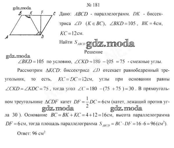 ОТВЕТ на задание № 181 Учебник по Геометрии 8 класс Казаков