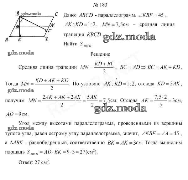 ОТВЕТ на задание № 183 Учебник по Геометрии 8 класс Казаков