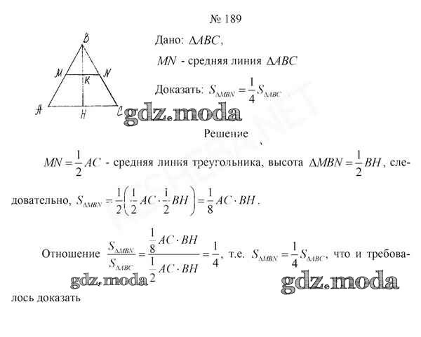 ОТВЕТ на задание № 189 Учебник по Геометрии 8 класс Казаков