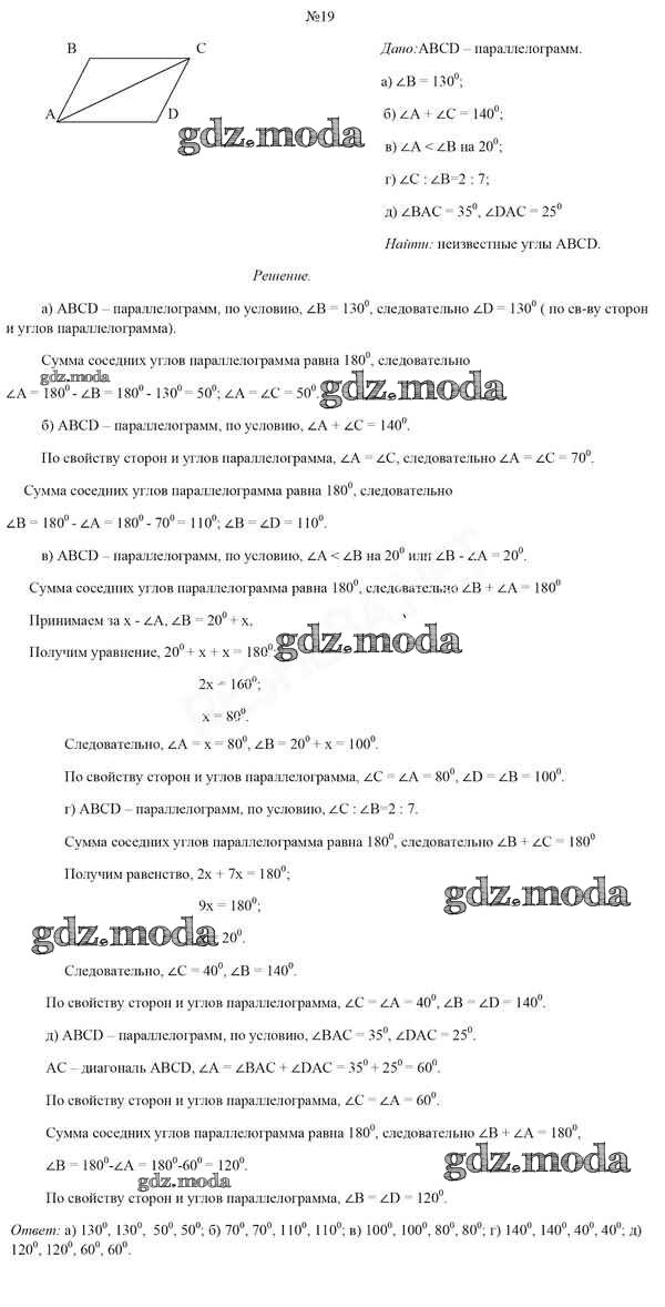 ОТВЕТ на задание № 19 Учебник по Геометрии 8 класс Казаков