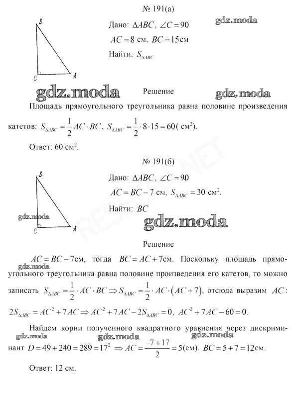 ОТВЕТ на задание № 191 Учебник по Геометрии 8 класс Казаков
