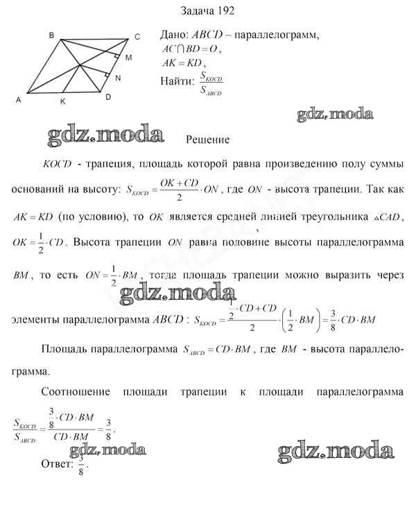 ОТВЕТ на задание № 192 Учебник по Геометрии 8 класс Казаков
