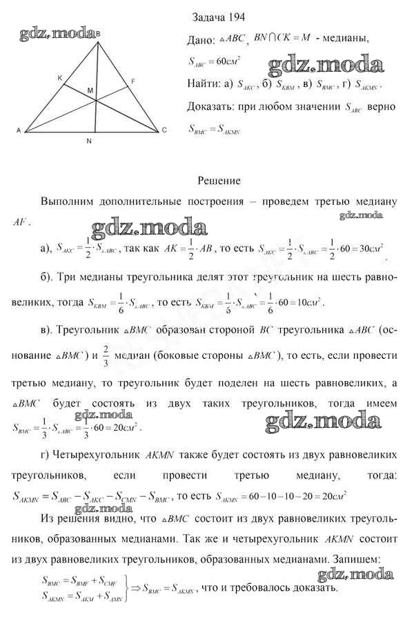 ОТВЕТ на задание № 194 Учебник по Геометрии 8 класс Казаков
