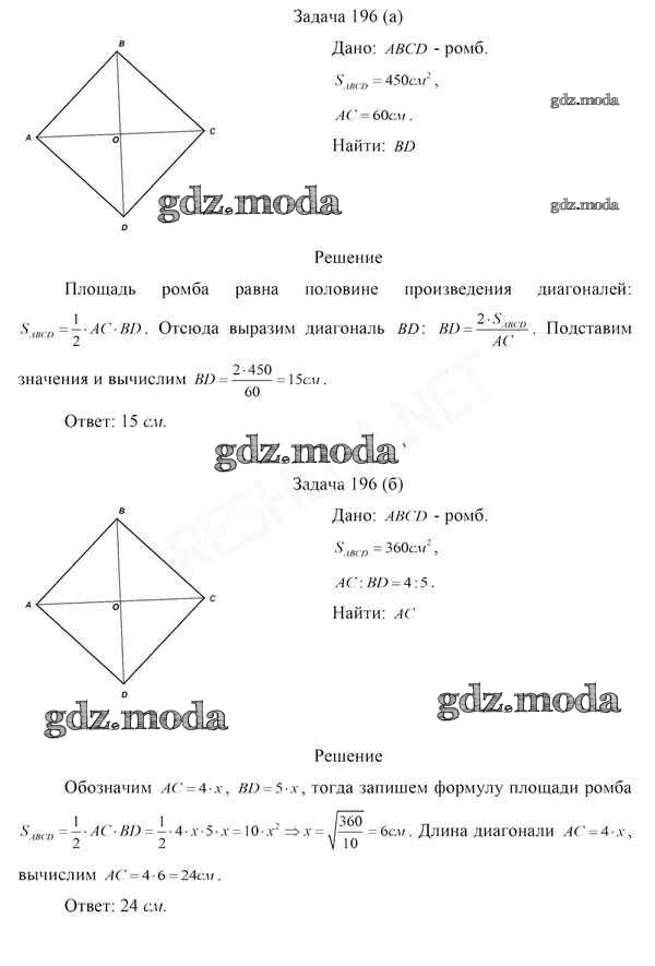 ОТВЕТ на задание № 196 Учебник по Геометрии 8 класс Казаков